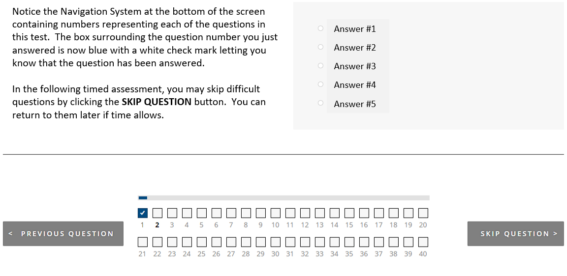 8) Timed Section Tutorial- The following section is a brief tutorial to familiarize you with the timed measurement assessments (if required by the organization). You will be asked to select your answer by Left-Clicking the mouse.